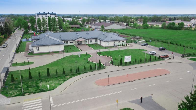 Duży parking zapewnia wygodne miejsce do parkowania dla rodziców.