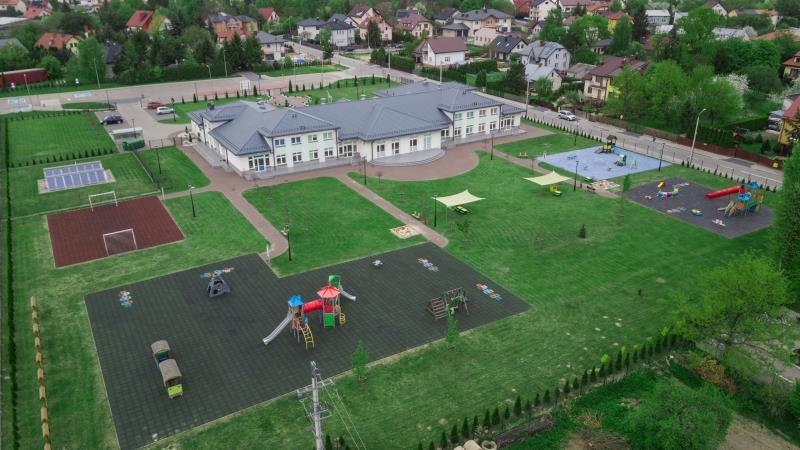 Do dyspozycji dzieci jest również ogromny teren z placami zabaw dla młodszych i starszych dzieci oraz tartanowe boisko z bramkami do piłki nożnej.